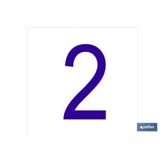 2 Número en glasspack adhesivo con el fondo blanco y carácter azul con medida en 62 x 62mm. El diseño de la señal puede variar, pero en ningún caso se variará el significado de la misma.