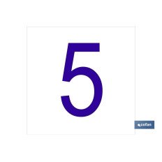 5 Número en glasspack adhesivo con el fondo blanco y carácter azul con medida en 62 x 62mm. El diseño de la señal puede variar, pero en ningún caso se variará el significado de la misma.