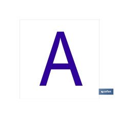 A Letra en glasspack adhesivo con el fondo blanco y carácter azul con medida en 62 x 62mm. El diseño de la señal puede variar, pero en ningún caso se variará el significado de la misma.