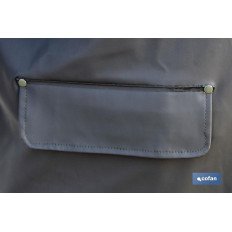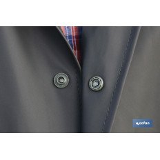 Abrigo largo de lluvia. Fabricado en PU y PVC, de color verde. Disponible en las tallas S, M, L, XL, XXL, XXXL. Cuenta con dos bolsillos con tapa para que no entre el agua. El cierre de la chaqueta es con corchetes aportando comodidad. Es muy ligero, resistente y flexible. Muy suave, cómodo e impermeable. Puede usarse para días lluviosos o en cualquier deporte como pesca o senderimo.