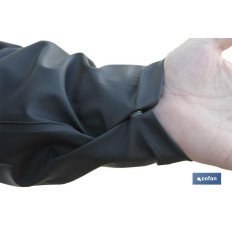 Abrigo largo de lluvia. Fabricado en PU y PVC, de color verde. Disponible en las tallas S, M, L, XL, XXL, XXXL. Cuenta con dos bolsillos con tapa para que no entre el agua. El cierre de la chaqueta es con corchetes aportando comodidad. Es muy ligero, resistente y flexible. Muy suave, cómodo e impermeable. Puede usarse para días lluviosos o en cualquier deporte como pesca o senderimo.