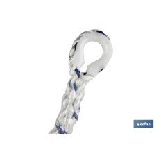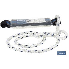 Absorbedor de energía de 44 mm con cuerda de seguridad de 1,5 m y 12 mm de diámetro. Adecuado para impactos inferiores a 6 kN. La cuerda incluye 2 hebillas con guardacabo y empalmes con vaina. Conforme a EN 355:2002 y EN 354:2010.