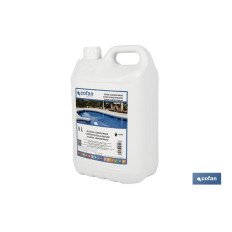 Algicida concentrado de 5 litros para mantener el agua de la piscina cristalina y evitar la formación y proliferación de algas, asegurando un agua limpia y segura para el disfrute de todos.El algicida concentrado actúa de manera rápida y eficaz para prevenir la formación de algas en la piscina. Su fórmula avanzada combate las algas existentes y previene su reaparición, garantizando un agua clara y limpia durante toda la temporada de baño.Este algicida se puede aplicar directamente en el agua o diluido previamente, ofreciendo flexibilidad y comodidad en su uso. No produce espuma, lo que facilita el mantenimiento y asegura que no queden residuos en el agua.Para un tratamiento inicial efectivo, añade 0,75 litros de producto por cada 100 m³ de agua. Para mantener tu piscina libre de algas, añade semanalmente 0,4 litros por cada 100 m³ de agua. Estas dosis aseguran una protección continua y eficiente contra las algas. El algicida concentrado está formulado para ser altamente efectivo sin comprometer la seguridad del agua de la piscina. Es seguro para el uso en todo tipo de piscinas y es compatible con otros productos de tratamiento de agua.Este producto es adecuado para cualquier tipo de piscina, desde pequeñas piscinas domésticas hasta grandes piscinas comerciales. Su alta concentración y eficacia lo hacen perfecto para mantener el agua limpia y libre de algas en cualquier contexto.Modo de empleo:Tratamiento Inicial: añadir 0,75 litros de producto por cada 100 m³ de agua a tratar. Distribuir el producto uniformemente en el agua de la piscina.Tratamiento de Mantenimiento: añadir semanalmente 0,4 litros de producto por cada 100 m³ de agua a tratar. Asegurar una buena circulación del agua para una distribución homogénea del producto.Advertencias: mantén el producto fuera del alcance de los niños. Puede provocar irritación ocular grave (H319). Muy tóxico para los organismos acuáticos, con efectos nocivos duraderos (H400, H410).