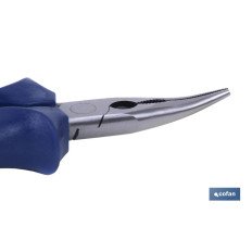 Alicates de punta curva fabricados en acero al cromo vanadio que proporciona una mayor resistencia y durabilidad frente al uso garantizando un resultado óptimo. Estos alicates Están aislados para evitar tomas de contacto con la electricidad. Tiene un diseño práctico de fácil manejo siendo idóneo para sujetar piezas y para moldear o cortar diferentes materiales. El mango antideslizante asegura el agarre y la seguridad. Disponible en varias medidas