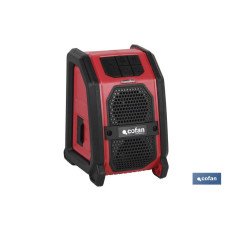 Altavoz Bluetooth a batería. Contiene puerto USB power Bank. Cuenta con un alcance de 10 metros. No incluye batería de 18 V, ni cargador. Se puede usar en cualquier lugar de la casa. Fácil de manejar. Nº RII-AEE de Cofan La Mancha 7038
