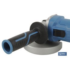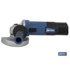 Amoladora angular de 900 W con velocidad variable para discos de Ø115/125 mm, con interruptor hombre muerto, empuñadura lateral antivibración, escobillas de desconexión automática, tuerca antibloqueo, variador de velocidad, sistema cambio rápido disco. Nº REI-RAEE de Cofan La Mancha: 7038.