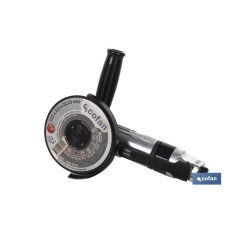 Amoladora neumática 115/125 mm de diámetro útil, para trabajos de corte y desbaste para discos de 115 a 125 mm con dispositivo de protección y mango para una cómoda sujeción.