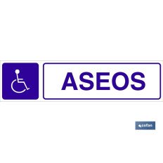 Señal informativa glasspack adhesiva con texto e imagen de aseos discapacitados. El diseño de la señal puede variar, pero en ningún caso se variará el significado de la misma.