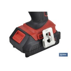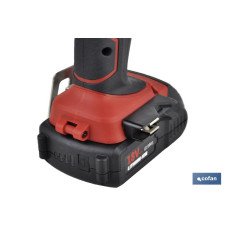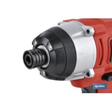 Atornillador percutor de impacto 1/4 de batería de Litio Li-ion 18V. Consta de control variable de velocidad 0-2000 rpm y selector de giro izquierda/derecha. Con 3 luces de trabajo Led y clip de metal para ajuste en cinturón. Incluye maletín con un cargador de batería, una batería de 18V y 4 accesorios más: 1 adaptador para tornillo de 12 mm, 1 adaptador para tornillo de 10 mm, 1 adaptador para tornillo de 8 mm y 1 adaptador para tornillo de 6 mm. N.º RII-AEE de Cofan La Mancha 7038