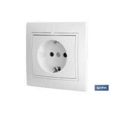 Mecanismo base enchufe bipolar de empotrar en color blanco. Compatible con todas las cajas de conexiones. Modelo Pacific. Características: 16 A 250 V.