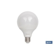 Bombilla en forma de globo con 25.000 horas de vida útil. La bombilla es de luz fría con 4000 K. Con un 85% menos de consumo, 15 W, 1.520 Lm y Rosca E27.