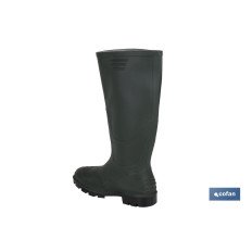 Bota de agua de caña alta, en color verde. Fabricada en PVC, con recubrimiento interior de punto. La suela que tiene es antideslizante. Puede usarse para todo tipo de sectores y trabajos. Es una bota de alta calidad, muy cómoda y fácil de llevar. Tallas disponibles desde la 36 hasta la 48.