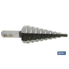 BROCA ESCALONADA AVELLANADA HSS. Broca en acero rápido rectificadas con dos cortes escalonados.