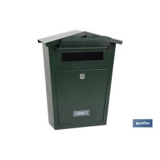 Buzón exterior correo Mod.Garden, medidas 360x290x105 mm. Colores blanco, verde, negro. Incluye kit de montaje y 2 llaves. Fabricado en acero galvanizado.