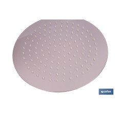 Cabezal de ducha redondo con un diseño extrafino y orientable que ofrece funcionalidad combinada con estilo para cualquier baño, proporcionando una cobertura de agua uniforme. Fabricado en acero inoxidable 304 asegura una resistencia superior. Caracterizado por su diseño minimalista y elegante, este cabezal se adapta a cualquier espacio. Equipado con unas salidas de agua antical para garantizar una experiencia de ducha óptima, minimizando la acumulación de cal y facilitando su limpieza simplemente con un paño suave. El cabezal es rápido de instalar, lo que lo convierte en la opción perfecta para renovar o instalar una ducha nueva. Disponible en negro mate y en acero inoxidable. Medidas: Ø24,5 cm.