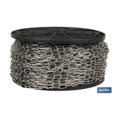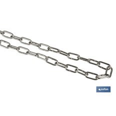 Cadena calibrada DIN 766 de Cofan, fabricada en acero inoxidable A4-AISI 316 para conseguir una mayor durabilidad y resistencia en su uso. Diseñada para aplicaciones marinas, esta cadena es perfecta para fondeo manual, sujeción de boyas, anclas y otros usos en entornos marítimos. A diferencia de las cadenas de hierro y acero convencionales, la cadena de acero inoxidable A4 es altamente resistente a la corrosión, al agua salada y a los ácidos, garantizando una larga vida útil incluso en condiciones marinas adversas. Su estabilidad extrema y alta carga de rotura la hacen versátil y adecuada para una variedad de aplicaciones tanto en interiores como en exteriores. Puedes encontrar esta cadena en diferentes tamaños de diámetro y precio por metro, para convertirse en la elección ideal para satisfacer tus necesidadesnáuticas y más.