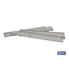Clavos modelo TG/15, 20, 25, 30, 40 y 50 mm de longitud y medida de 1 x 1,25 mm para clavadoras modelos TG, en cajas de 5000 piezas. El estilo de cabeza en forma de copa y el extremo aplicador permite no aplicar clavos si la máquina no está apoyada.