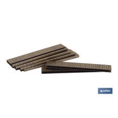 Grapas Modelo 90 para grapadoras con longitudes desde 20 hasta 38 mm. Grapas para grapadora de aire a presión con medidas de 0,9 x 1,20 mm y con longitudes desde 20 mm hasta 38 mm. Grapas de alambre grueso, diseñadas para aplicaciones de tapicerías de asiento.
