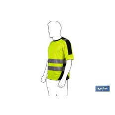 Camiseta de alta visibilidad en color amarillo y negro diseñada para potenciar la seguridad del trabajador.Esta camiseta técnica incluye manga corta, cuello redondo y cintura suelta.Su composición es 100 % poliéster. Gracias a su tejido de alta transpirabilidad, te permite realizar cualquier esfuerzo físico en condiciones de temperaturas altas en el exterior.Camiseta conforme a la norma EN ISO 20471:2013+A1:2016 (Clase 2). Tallas disponibles: S, M, L, XL, XXL y XXXL.