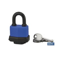 Candado Laminado Antihumedad Quality Plus. Fabricado en latón, arco de acero endurecido y anticorrosivo. Mecanismode alta seguridad para evitar el robo.