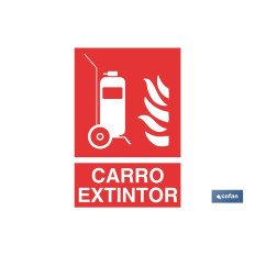 Señal de socorro Carro extintor. Pictograma + Texto. Tamaño y material a elegir (luminiscente y adhesivo). El diseño de la señal puede variar, pero en ningún caso se variará el significado de la misma.
