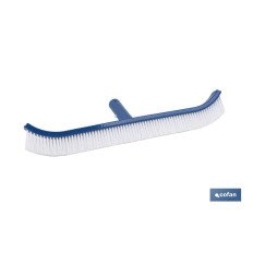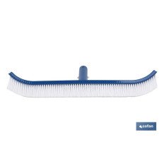 Cepillo curvo diseñado para limpiar el fondo y las paredes de la piscina, manteniéndola limpia y cristalina.Muy ligero y cómodo de manejar, con gran densidad y resistencia de cerdas diseñadas para ayudar a eliminar la acumulación de algas en las paredes o en el suelo de la piscina.El cepillo tiene una medida de 45 cm y el mango 31 cm de largo. Su anchura permite cubrir grandes áreas para una limpieza más eficiente. Sistema de fijación al mango telescópico con un clip. Fabricado en polipropileno de color azul.