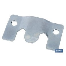 Chapa de anclaje zincada destinada a la unión de 2 partes de mobiliario, como espejos o cualquier mueble suspendido.Para asegurar un correcto anclaje son necesarias 2 chapas, una con las puntas hacia arriba y otra hacia abajo, para después encajarlas.Esta chapa está fabricada en acero zincado de gran resistencia.Disponible en pack o unitario con medidas de 60 x 35 mm.