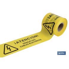 Cinta amarilla de balizamiento, cables eléctricos con galga de 300 y medidas de 150mm x 250 metros