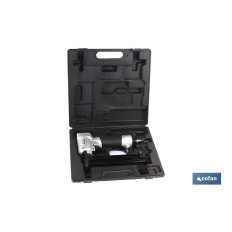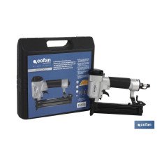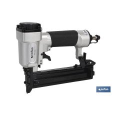 Clavadora neumática para clavos (TG) Ø 1 x1,25 mm, y longitud entre 15 y 30 mm. Muy práctica y útil en aplicaciones para bricolaje y profesional. Peso: 1,1 kg. El mango está envuelto con goma antideslizante.