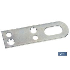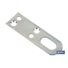 Chapa con colgador destinada a la sujeción de espejos, cuadros y cualquier objeto de decoración ligero.Dispone de cuatro agujeros para fijarse al mueble mediante tornillos. El agujero superior sirve para encajarse con el gancho o alcayata anclado previamente en la pared.Esta chapa está fabricada en acero zincado de gran resistencia.Disponible en pack o unitario con medida de 15 x 50 mm.
