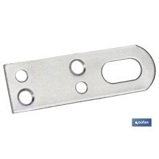 Chapa con colgador destinada a la sujeción de espejos, cuadros y cualquier objeto de decoración ligero.Dispone de cuatro agujeros para fijarse al mueble mediante tornillos. El agujero superior sirve para encajarse con el gancho o alcayata anclado previamente en la pared.Esta chapa está fabricada en acero zincado de gran resistencia.Disponible en pack o unitario con medida de 15 x 50 mm.