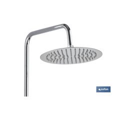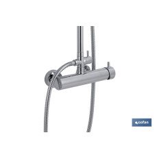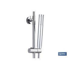 Columna de ducha con grifería monomando cromada. El cabezal de la ducha extraplano está fabricado en acero inoxidable 304 y es antical. Cuenta con un filtro de ahorro de agua de 6 litros por minuto y una rótula de latón orientable. La barra telescópica de acero inoxidable 304 es regulable en altura y cuenta con un soporte. La ducha de mano tiene una función, incluye un filtro de ahorro de agua de 6 litros por minuto y también es antical. El soporte de ducha de mano está fabricado en polipropileno. El flexo de ducha está fabricado en acero inoxidable 304 cromado con una tubería interior fabricada en EPDM reforzado. Desviador de latón. Tiene muy buena resistencia a la abrasión y al desgaste. Medidas: Barra telescópica: 80 - 140 cm con diámetro de 2 y 2,4 cm. Cabezal: 25 cm. Manguera: 1,5 - 1,8 m Mango: 21 cm