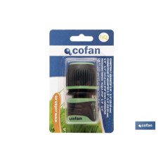 Conector modelo Confort para conexión de mangueras de riego/jardín. Está fabricado en ABS de gran calidad de color negro y verde. Cuenta con varias medidas según el diámetro que tenga la manguera. Buena resistencia UV proporcionando una larga vida útil al racor. Es muy rápido y fácil de instalar. Muy resistente a los impactos, su material es sólido y muy duradero.