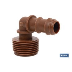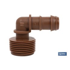 Conector en forma de Codo y rosca para mangueras especial para riego por goteo o aspersión. Su uso está recomendado para jardinería y agricultura. Su diseño permite un uso fácil para adaptarlo a mangueras o tubos de riego. Gracias al conector de empalme mixto se pueden llevar a cabo distintos tipos de riego sin necesidad de herramientas adicionales. Está fabricado en material resistente y diseñado para ser utilizado bajo condiciones meteorológicas adversas. Su montaje es fácil de llevar a cabo. La rosca de uno de sus extremos es consistente y habilita un roscado fijo y fuerte.