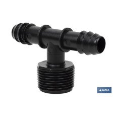 Conector T con doble empalme y rosca 3/4"" para mangueras especial para riego por goteo o aspersión. Su uso está recomendado para jardinería y agricultura. Su diseño permite un uso fácil para adaptarlo a mangueras o tubos de riego. Gracias al conector de empalme mixto se pueden llevar a cabo distintos tipos de riego sin necesidad de herramientas adicionales. Está fabricado en material resistente y diseñado para ser utilizado bajo condiciones meteorológicas adversas. Su montaje es fácil de llevar a cabo. La rosca de uno de sus extremos es consistente y habilita un roscado fijo y fuerte.
