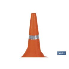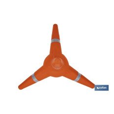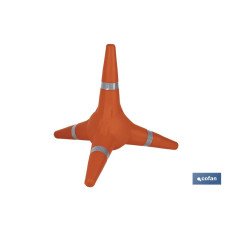 Cono tetrápodo de balizamiento naranja para controles de tráfico fabricado en polietileno con bandas reflectantes. Estos conos son ligeros y apilables para facilitar su almacenamiento y transporte. Indicado para actuaciones donde se requiera delimitar el paso de vehículos. Es el tipo de señalización ideal para ser usado en controles policiales e inspecciones.