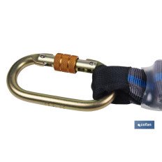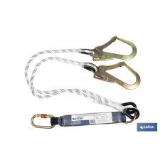 Esta eslinga de seguridad bifurcada presenta un robusto diseño con cuerda trenzada de poliamida que cuenta con un diámetro de 11 mm, lo que la hace ideal para utilizarse en trabajos verticales que requieren máxima fiabilidad. Equipada con un absorbedor de energía de cinta ancha de 45 mm, esta eslinga garantiza que el impacto en caso de caída sea inferior a 6 kN, proporcionando así una seguridad adicional. El absorbedor está protegido por una vaina negra que mejora la resistencia a los rayos UV, prolongando la vida útil del producto bajo exposición solar. Incluye un mosquetón de bloqueo con rosca y dos ganchos para andamios, todos fabricados en acero. Además, cuenta con hebillas con terminal que mejoran la resistencia a la abrasión. De esta manera, cada una de las extremidades del absorbedor de energía podrá conectarse al punto de enganche de un arnés (ya sea dorsal o esternal) —EN 361— y a l punto de anclaje por medio de conectores —EN 362—. Las costuras están protegidas bajo una funda transparente para evitar desgastes y asegurar una visibilidad completa de su estado antes de cada uso. Conforme a las normativas EN 355:2002, PPE-R/11.063, esta eslinga es esencial para trabajadores que buscan la máxima protección y cumplimiento normativo. Esta cuerda bifurcada cuenta con una longitud de 1,5 metros. Por razones de seguridad, antes de cada uso debe asegurarse de que nada obstaculice el desenrollamiento normal de la cincha. Se prohíbe el uso de este producto en aristas vivas, estructuras de bajo diámetro y con corrosión, pues pueden afectar las prestaciones del absorbedor de energía. Le recomendamos tomar las precauciones adecuadas para proteger la eslinga en caso de que la evaluación de riesgos llevada a cabo antes del inicio del trabajo muestre la probabilidad de utilizarla en un uso por encima de una arista.