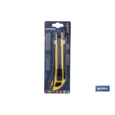 Cútter profesional con función de carga automática para trabajos exigentes e intensos. Diseñado con un orificio para poder conectar un mosquetón o enganche y transportarlo cómodamente. Fabricado con la máxima seguridad gracias al sistema de bloqueo automático de las cuchillas. El mango recubierto de goma blanda permite un agarre cómodo y ergonómico. Cada kit incluye un cútter con 3 cuchillas de recambio.