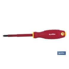 Destornillador de electricista 1000V aislado. Destornillador pozidriv, con huella de PZ0 hasta PZ3 y longitud máxima de 20 centímetros. Mango de color rojo. Conforme a normativas IEC 60900 y GS. Perfecto para trabajos de electricidad.