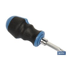 Destornillador Reversible PH 2 y SL 5, con versiones en corto y largo, con mango ergonómico resistente y duradero. Las puntas son magnéticas, lo que te facilita muchísimo a la hora de trabajar con tornillos pequeños. Ideal para reparar mecánica, instalaciones y mantenimiento. Extrayendo y girando la varilla, es posible disponer de los dos tipos de bocas. Resistente y duradero, para un uso prolongado. Destornillador ideal para diversas aplicaciones por su comodidad de uso.