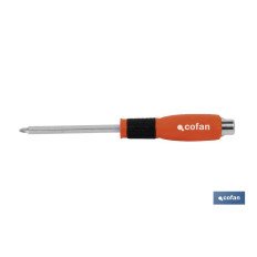 Destornillador pozidriv de impacto con huella Pozidriv de PZ-1, PZ-2 y PZ-3. Hecho en acero cromado. Contiene un saliente para el golpeo y partes planas para añadir herramientas en caso de hacer giros forzados. Ideal para aplicaciones donde se requiere de un destornillador de altas prestaciones. El mango es de agarre antideslizante y cómodo. Fabricado en acero cromo molibdeno y vanadio con la varilla cromada aseguran la durabilidad del destornillador. El material del mango y de la varilla aseguran una alta resistencia a palancas y golpeos.