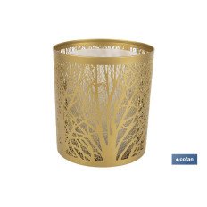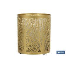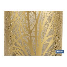 Consigue toques de naturaleza y aromas relajantes con nuestro difusor cilíndrico con capacidad de 100 ml en color dorado y formas de árboles.Este difusor de aromas utiliza tecnología ultrasónica para crear una fina niebla que dispersa la fragancia de tus aceites esenciales favoritos por toda la habitación. La forma cilíndrica del difusor, junto con el diseño de árboles en dorado metalizado, crea un ambiente natural y acogedor. El diseño, con luz led blanca, es elegante y moderno para adaptarse a cualquier decoración.Con su tamaño compacto, este difusor es fácil de mover y de limpiar, lo que lo hace perfecto para uso en cualquier habitación, desde el dormitorio hasta la sala de estar.Incluye un mando a distancia para utilizarlo más cómodamente.Las medidas del difusor son de 12,7 x 17 cm.Está fabricado en acero y cristal.