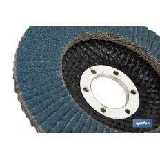 Disco laminado estándar inclinado de zirconio con plato soporte cóncavo y diámetro de disco de 115 mm. Cuenta con un alto poder de desbaste y larga duración. Con granos desde 40 hasta 120. Válido para trabajar en aceros y aceros inoxidables.