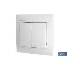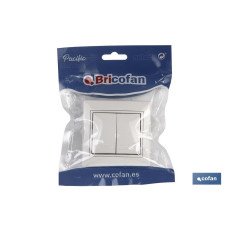 Mecanismo doble interruptor-conmutador de empotrar en color blanco. Compatible con todas las cajas de conexiones. Modelo Pacific. Características: 10 A 250 V.