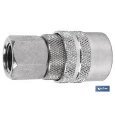 Enchufe rápido con rosca hembra de 1/4, 3/8 y 1/2. Compacto y ligero para todas las instalaciones que funcionan con aire comprimido. Roscas invertidas. No se necesita aplicar selladores. Rosca giratoria de buen rendimiento de sellado con exterior resistente ante golpes o rayaduras.