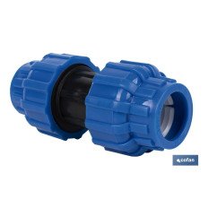 Enlace recto para tuberías de polietileno (PE).Adecuado para trabajar en sistemas de conducción de agua con una presión nominal de 16 bares.Este enlace está fabricado en polipropileno de alta calidad y durabilidad con un acabado de color negro y dos tuercas de color azul. Dispone de junta de estanqueidad de EPDM que garantiza un ajuste fuerte, duradero y sin fugas.Disponible con diferentes medidas. Pueden comprarse en pack o de forma unitaria.