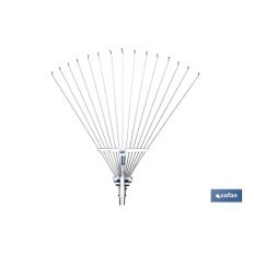 Rastrillo metálico para jardín con 15 dientes. Ideal para ratificar flores, malas hierbas y cortes de hierba en caminos y superficies de césped. Esta escoba es especialmente adecuada para grandes áreas de aplicación. Es de gran durabilidad gracias a su escoba de alta calidad con púas extremadamente resistentes. Fabricado en material de aluminio endurecido y perfil único de eje para reducir el peso sin perder fuerza. Permite trabajar fácilmente sin realizar un esfuerzo excesivo. Sus dientes arrastran los desechos sin dañar elementos importantes como raíces o cables. Este producto es ideal para recoger hojas y desechos de árboles y plantas. Es fácil de transportar y limpiar. Este producto se convierte en una herramienta indispensable para el cuidado y mantenimiento de jardines y zonas de agricultura en general.
