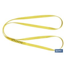 Eslinga de escalada fabricada en poliéster de alta calidad que proporciona la seguridad y la resistencia que necesitas. La eslinga de escalada cuenta con unas medidas de longitud de 1,20 metros. Anilla de anclaje con cinta de poliéster de 1,20 m de longitud cosida. Se puede fijar a un punto fijo para crear un sistema de anclaje. Un sistema indispensable para la escalada y trabajos que necesiten un extra de seguridad.