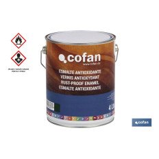 Esmalte antioxidante en color blanco brillo, negro brillo, verde carruaje y gris plata. De fácil aplicación sobre óxido u otros metales y secado rápido. Sin necesidad de utilizar ninguna imprimación previa. La superficie debe estar limpia, seca, desengrasada y exenta de productos extraños o residuos. Apto para utilizar en materiales tanto de interiores como exteriores. Envase de 4 litros.