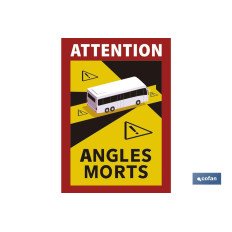 Señal adhesiva «ATTENTION ANGLES MORTS», adecuada para cumplir con los requisitos establecidos en Francia por el Decreto Nº 2020-1396 del 17 de noviembre de 2020, relativo a la señalización de los ángulos muertos en vehículos con un peso máximo autorizado igual o superior a 3,5 toneladas.